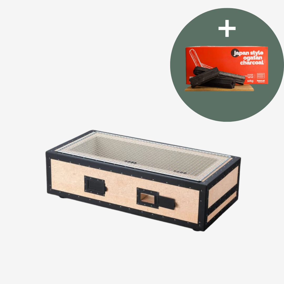 Bij aankoop van een Konro Grill Diatomiet ontvang je tijdelijk een doos Binchotan Ogatan (10kg) ter waarde van €60 cadeau!*