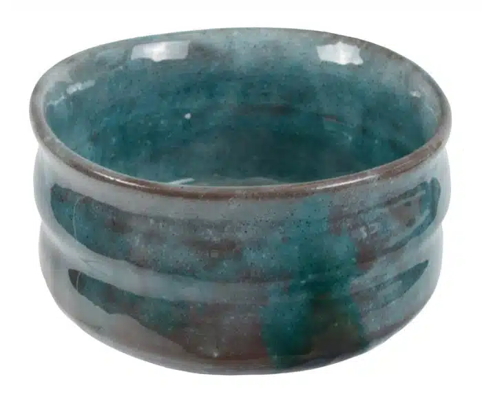 Deze Japanse keramische kom voor Matcha thee is met de hand vervaardigd in Japan, met een focus op kwaliteit en esthetiek. De blend van blauw en groen met marmerachtige effecten versterkt het unieke karakter van elke kom.