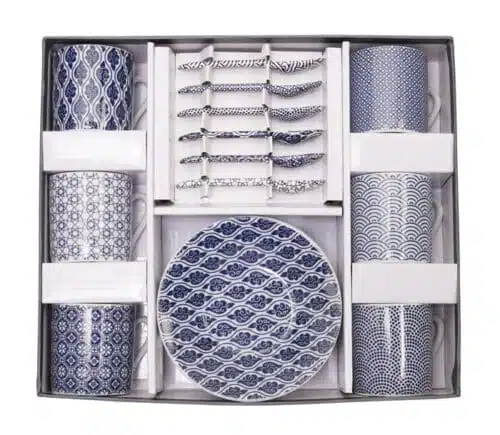 Ontdek de verfijning van de Japanse keuken met de Tokyo Design Studio Eetstokjes Cadeau Set in Blauw Kasuri-design. Deze set verrijkt elke maaltijd met een vleugje Japanse traditie.